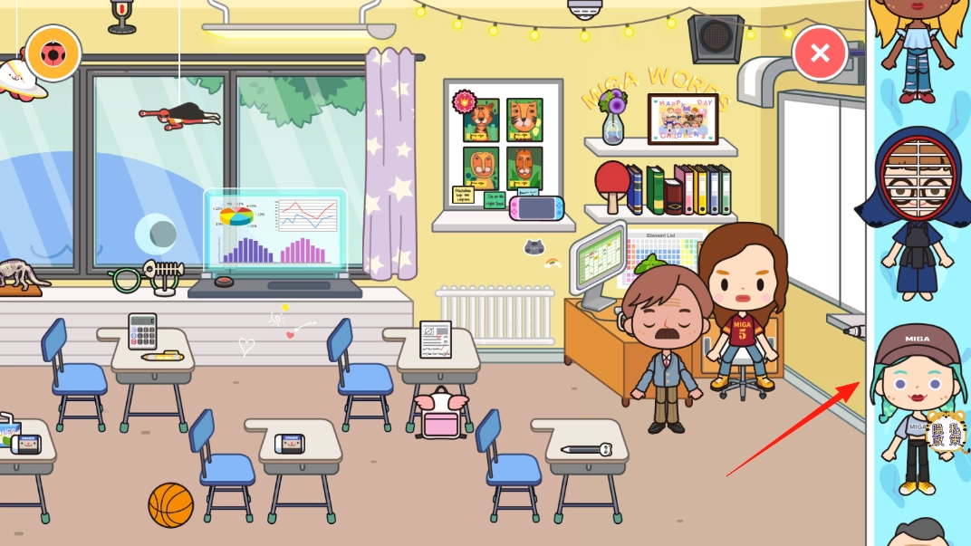 1. 在教室场景当中,点击空着的座位,就能让角色坐下,进而与周边同学展开互动。