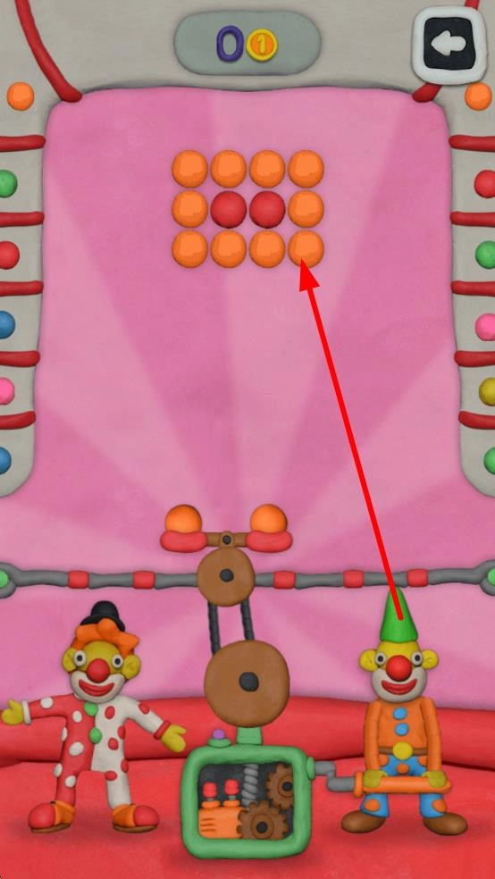 1、匹配消除:观察黏土球颜色分布,调整发射角度,发射小球匹配同色,实现消除,清空目标区域。