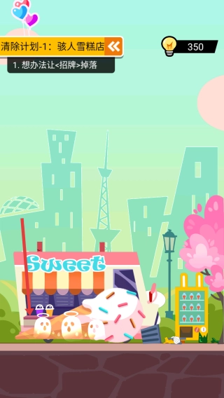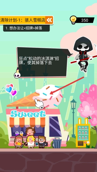 2、互动招牌:狂点场景中巨大的冰淇淋招牌,使其松动掉落。