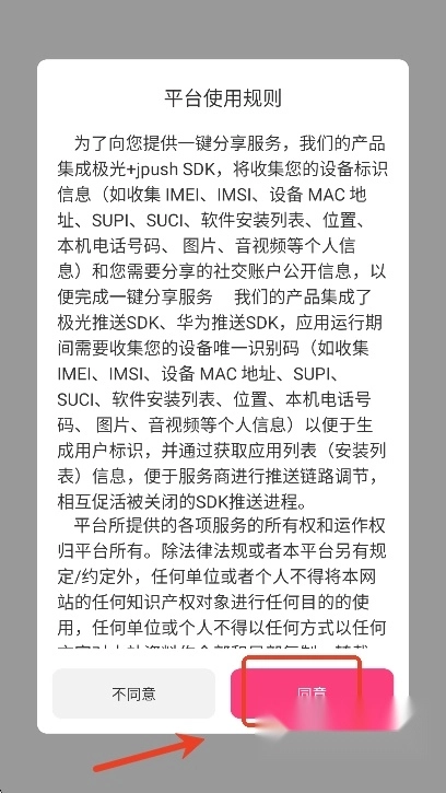 用户们可以先点击“同意”,同意软件协议政策