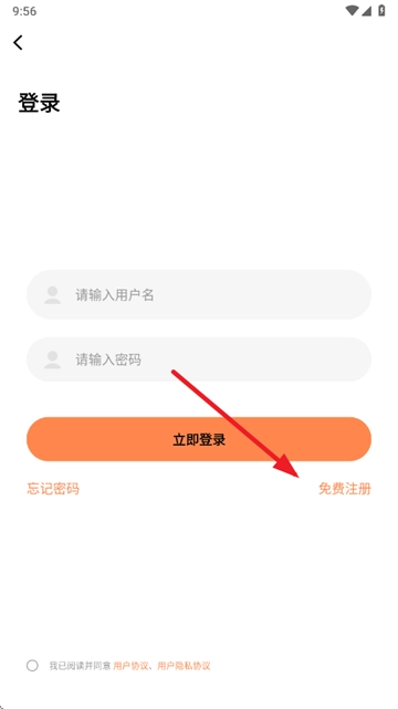 4、输入用户名和密码,记得勾选用户协议和隐私政策