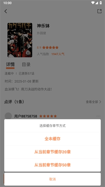 4、具备一键缓存漫画资源功能,如此一来,即便处于无网络状态,也可随时随地畅享漫画阅读。
