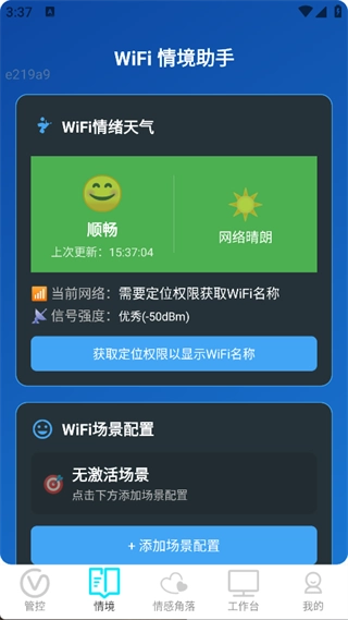 3. 点击页面下方的‘情境’,即可看到WIFI情绪天气功能,和WIFI场景配置功能;