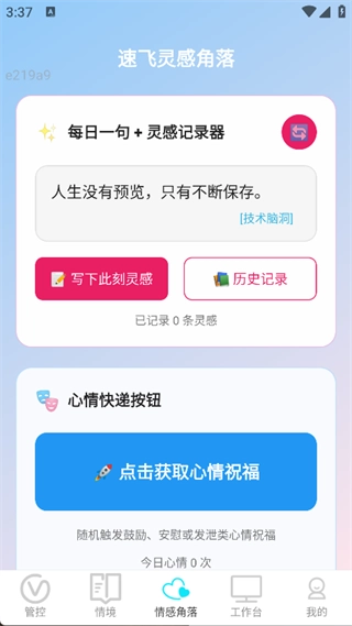 4. 轻点页面下方的“情感角落”,就能记录当下的灵感,点击还可获取心情祝福。