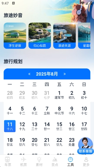 5、在工具中提供了旅途妙音,还可以进行旅行规划等设计等操作。