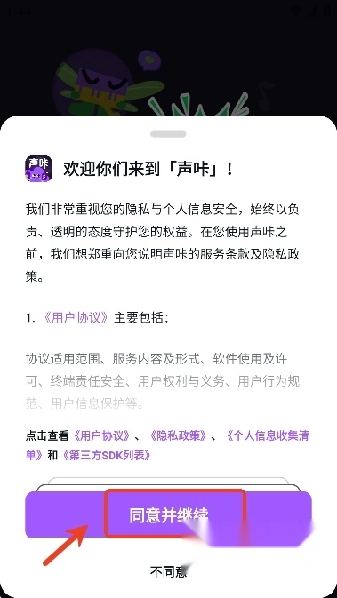 若要打开,用户可先点击“同意”,以同意软件协议政策。