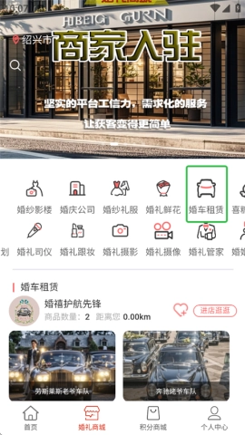 2、接着选择婚车租赁选项,旅程的第一步就此开始。