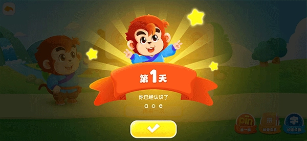 4、学习后还会有各种小试题需要孩子操作,如图孩子需要根据语音播报点击正确的拼音来帮助猴子过桥