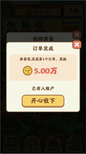 3、作物成熟后记得收取,收取后会自动提交订单,完成订单可以获得大量奖励。