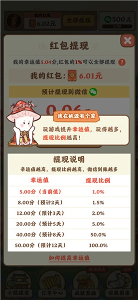 2、点击人物栏下方的红包则可以查看具体数量,幸运值越高能兑换的比例也越高。