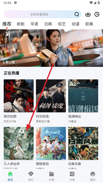 2、点击底部“排行”,按热度查看电视剧、电影、综艺榜单。