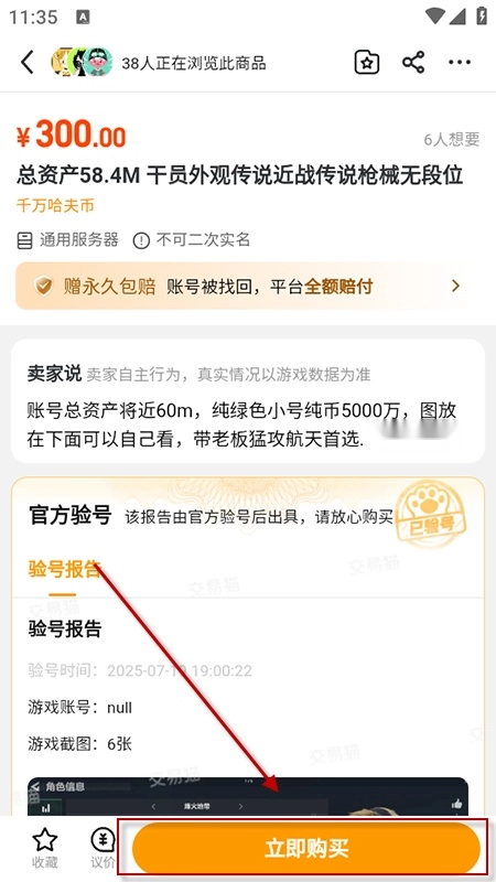 4、安全保障功能:包含验号、永久包赔、角色转移、实人认证、保险服务等,保障交易安全。