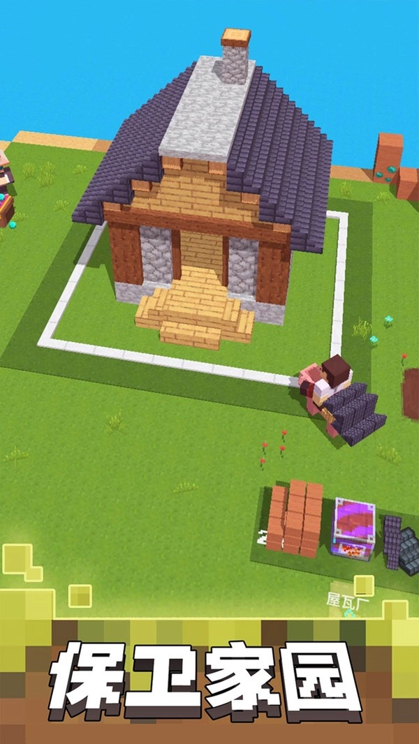 玩家可以收集各种材料,通过简单的操作组合成各种形状的方块建造各种物品、建筑