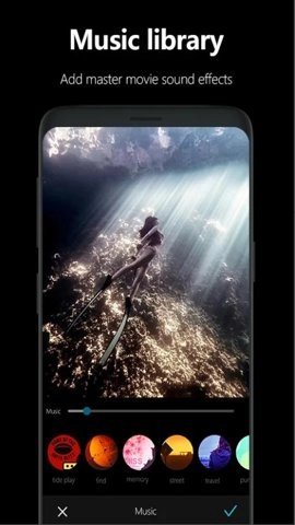 1、你可以一键选择独特的特效、酷炫的过渡效果和优美的配乐,完美剪裁视频中需要保留的部分,并剪裁掉其他内容。