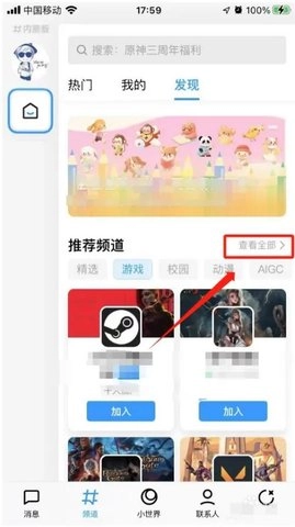 这款软件指的是 QQ 里的频道,若要进入频道,需手动开启。