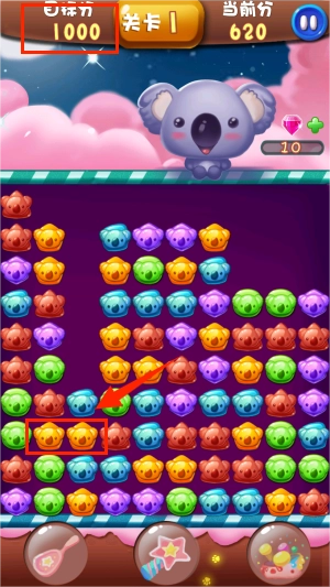 3、每消除就能获得相应得分,达到目标分就可以过关啦。
