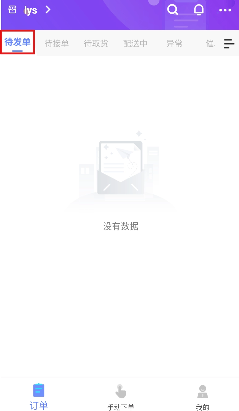 3、完成注册登录软件,在主界面找到订单页面入口,进入后录入配送信息即可发起订单。