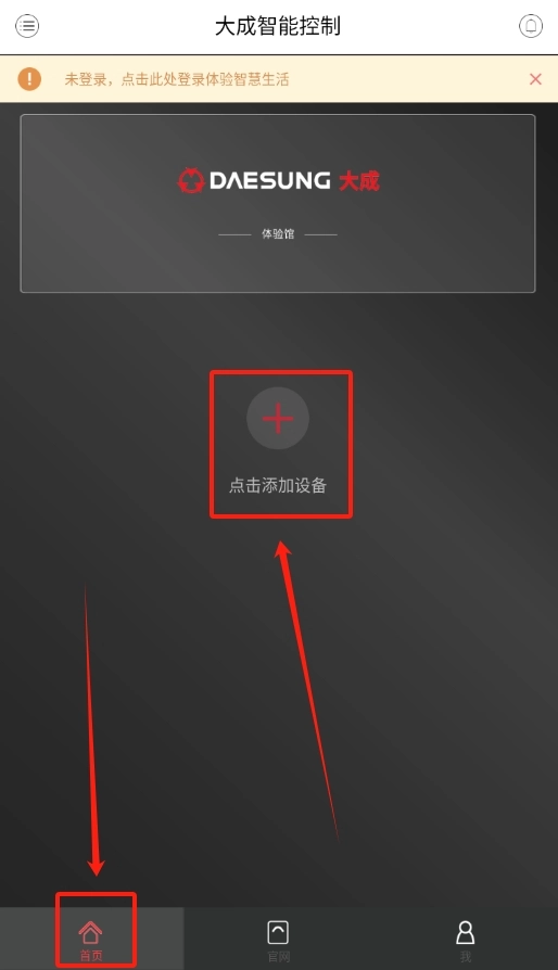 1、在应用商店安装大成智能控制,打开软件后点击注册登录,进入主界面准备开始使用。