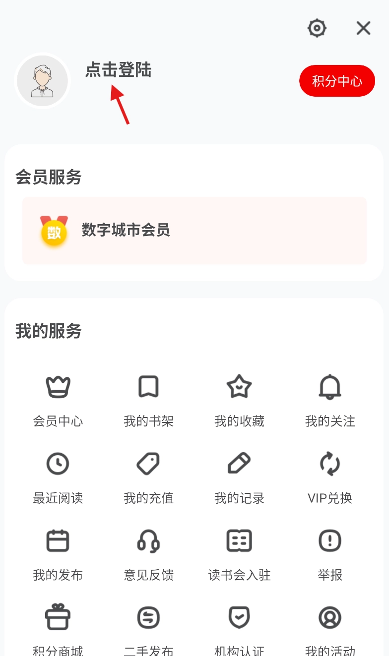 2、进入头像相关页面后,找到醒目的 “点击登陆” 字样标识,点击进入登录界面。