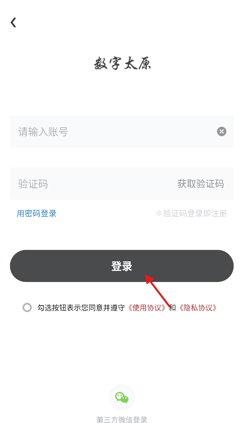 3、在登陆页面输入手机号,获取并填写验证码,确认信息无误后点击 “登录” 完成操作。