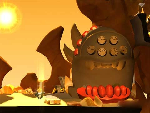 12、过了第六关最后一关,接下来只要通过整个游戏的最终关卡就行。过了大树关卡后,会自动传送到Boss面前。Boss一开始会扔石头,别着急,这比较容易躲,等Boss扔了三次石头后戴上面具,用太阳射线照射眼睛部分,另一边眼睛也一样,要等扔三次石头。两边眼睛都射瞎后,Boss头部会变成气球掉下来。
