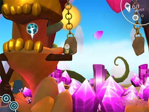 2、至于游戏操作玩法,在第一次进入游戏的时候,要在“按键”与“摇杆”之间选择一种方式,大家可以根据自己的使用习惯来选择。游戏的操作还是比较简单的,玩家在游戏中除了要控制老乞丐上蹿下跳,收集独特的图腾和躲避敌人攻击外,最重要的就是利用面具的神力解开特殊的谜题了。