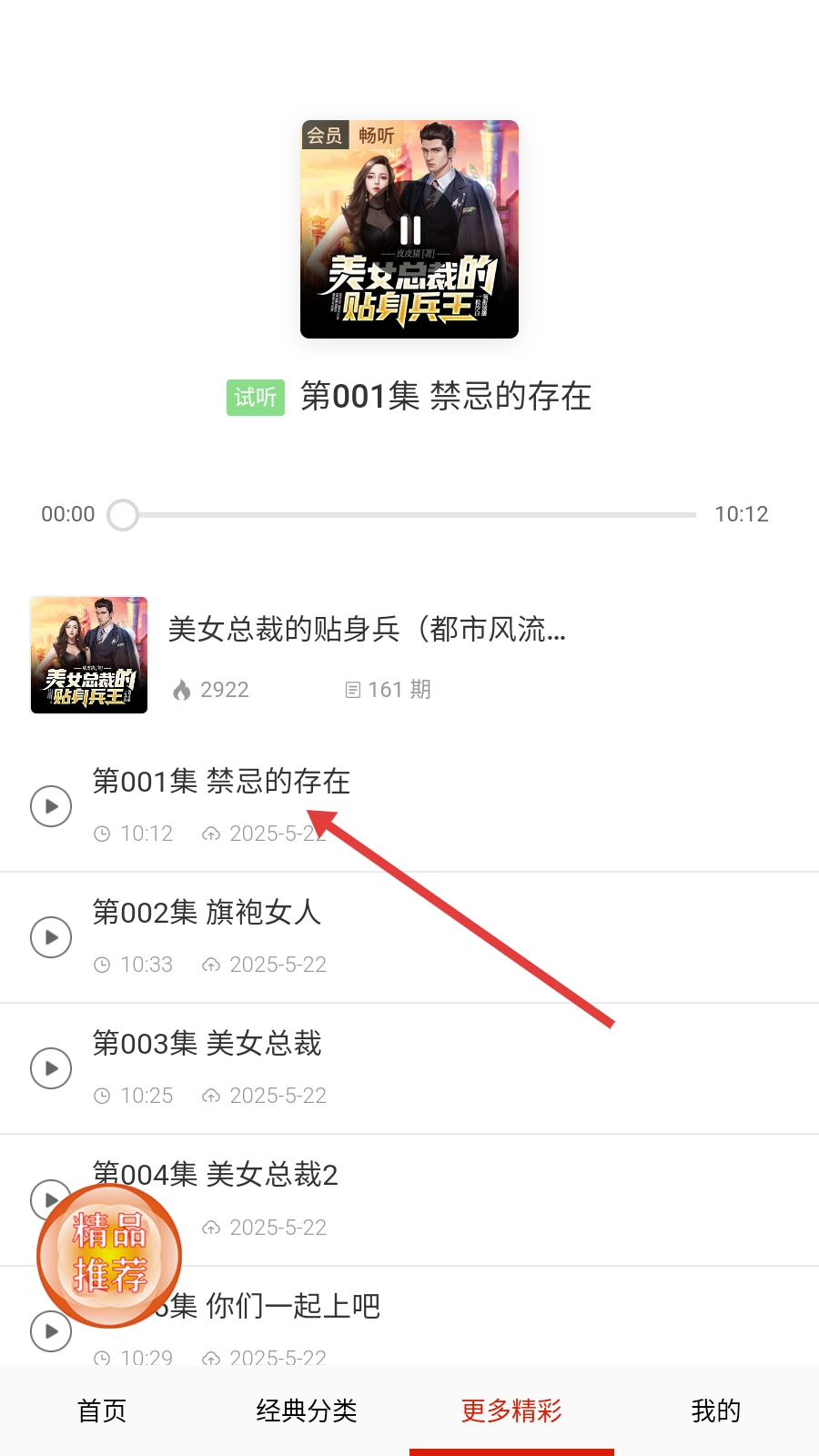 4、点击【集数】,即可开始收听对应章节沉浸故事世界。