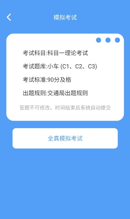 2、点击"全真模拟"选项,系统将完全按照正式考试规格设置题库和考试环境。