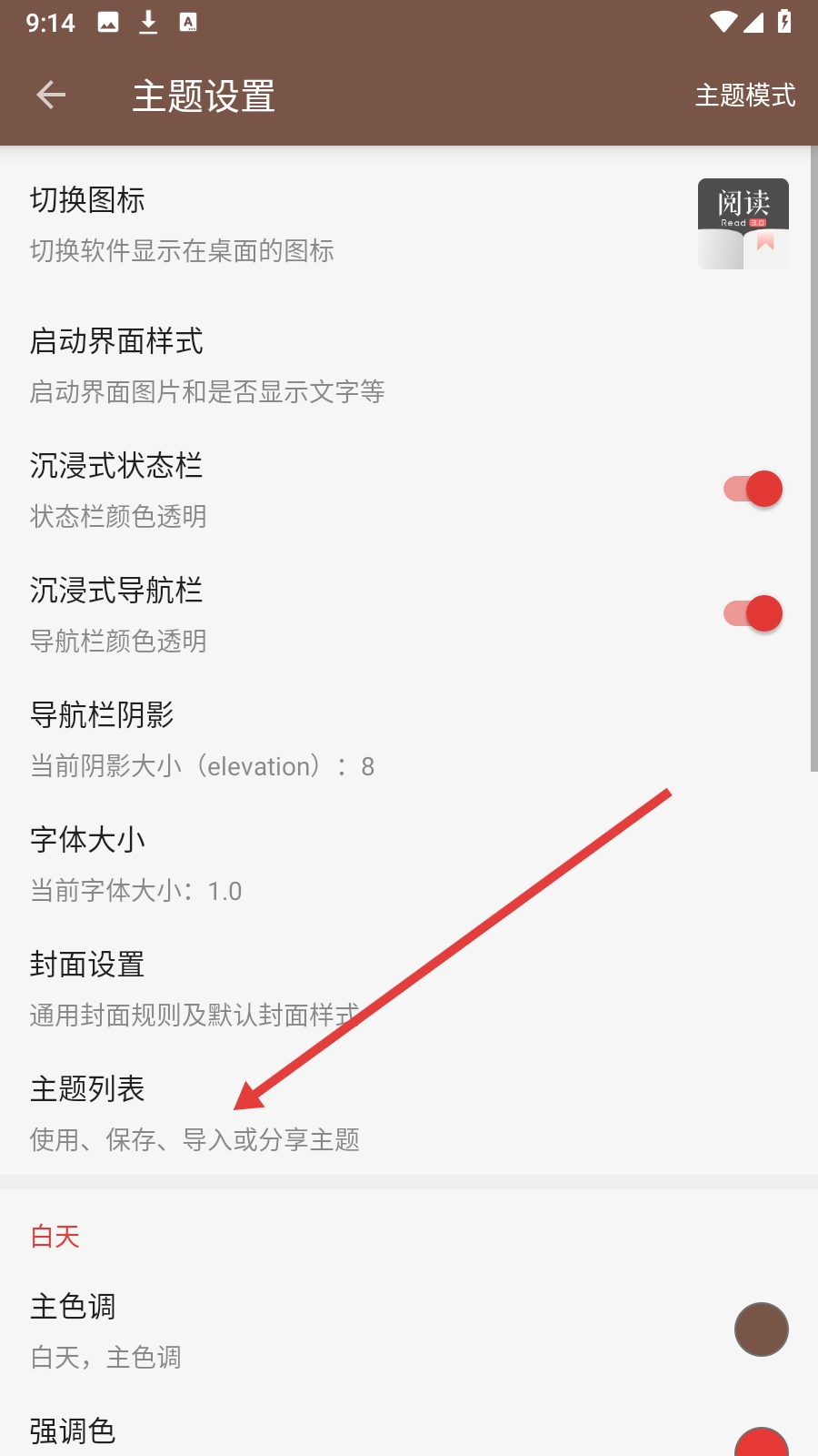 3、选择【主题列表】,查看可用主题选项内容。
