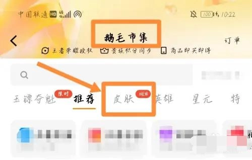 在鹅毛集市里面,点击皮肤