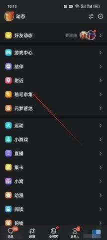 首先打开QQ软件,进入主界面后,在界面下方找到并选择“动态”选项,接着在“动态”页面中,点击相应入口进入游戏中心。