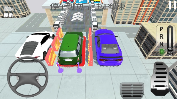 5、这个关卡真实模拟了定点汽车汽车停车的过程,左边有方向盘用于控制车辆打弯,最右边的是油门,右边下方一点的是刹车。