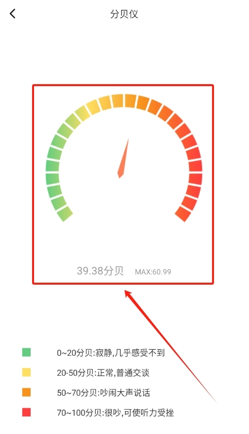 2、其中分贝仪功能很直观,点击就能进入界面,实时检测周围环境的声音分贝数。
