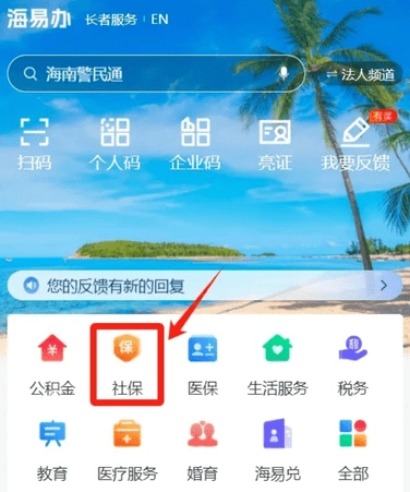 进入海易办或海易办支付宝、微信小程序,点击首页【社保】。