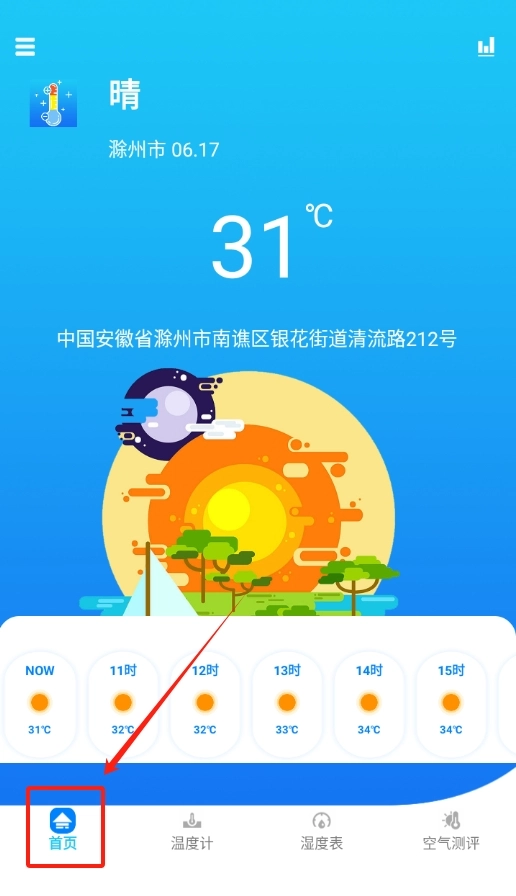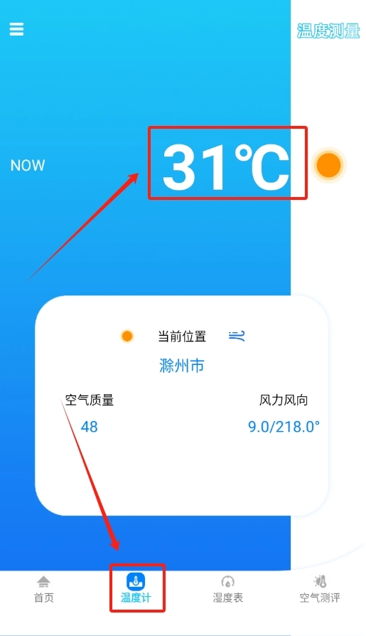 2、在天气展示区域,您能瞧见一个形象的温度计标识,点击它,就能精准查看当下的实时气温。
