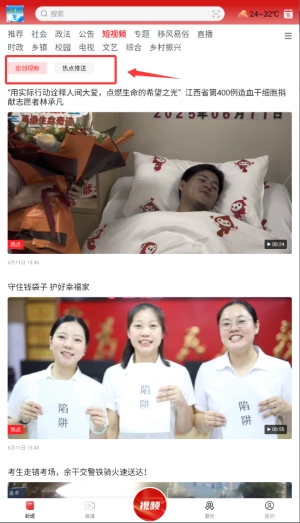 1. 打开余干之窗,在首页的导航栏中挑选“短视频”频道,此频道集合了各种各样的本土资讯视频内容。