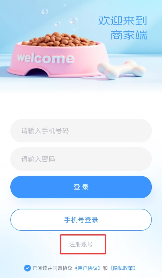 3、注册成功后,使用手机号和密码即可登录商家管理后台,开始店铺运营。