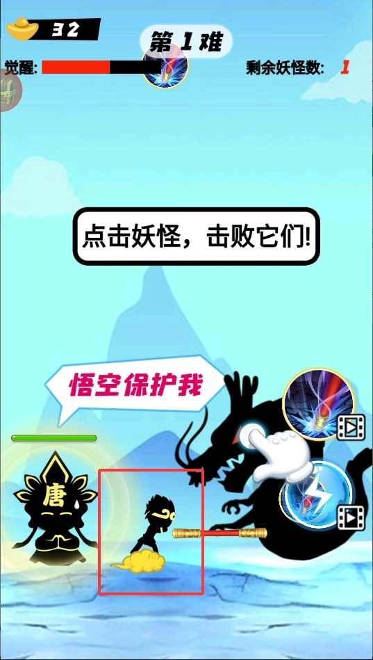 1. 以创新方式演绎经典西游题材,玩家可化身为齐天大圣,凭借点击操作与各路妖怪展开对抗,再度体验九九八十一难的经典冒险征程。