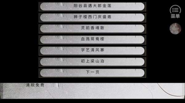 2、在剧情列表选对应章节,如【阳谷县遇大郎金莲】等,点击进入体验特定情节,推进故事线。