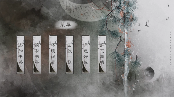 3、用【添加书签】【读取书签】管理进度,【环境设置】调参数,【回放一览】重温情节;借【角色好感】了解关系,【鲜花商城】购道具,优化游戏体验。