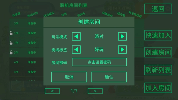 3、接着选择玩法模式,以及房间标签和设置房间密码;