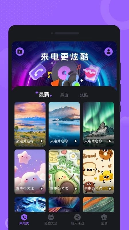 悦动铃声大全免费版,这是一款融合了来电秀、宠物大全、晴天活动等众多功能的软件。软件内拥有海量来电秀资源,各式各样炫酷多彩的来电秀供用户随意挑选并使用。把心仪的来电秀设置成手机来电秀,能让你的手机来电提示别具一格,尽情享受个性来电带来的趣味体验。同时,软件里还有超多萌趣可爱的宠物,用户随时能在宠物大全中欣赏浏览各类宠物图片,深入探索了解更多可爱萌宠。除此之外,软件还提供丰富的美食菜谱资源,方便用户轻松学习美食制作方法。大量好听的来电铃声,用户可随心使用,十分便捷。有需求的用户,快来体验悦动铃声大全最新版吧!