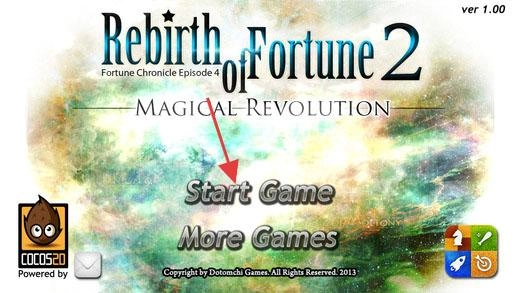 1. 在游戏启动界面,会呈现“Rebirth of Fortune2”以及“MAGICAL REVOLUTION”字样。若想开启游戏,点击“Start Game”即可,此外还有“More Games”这一选项。
