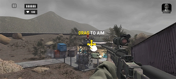 3、当我们面对一个任务目标的时候,我们可以首先移动游戏视角然后开镜,最后射击;
