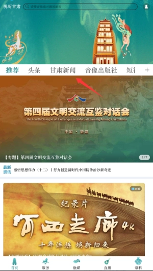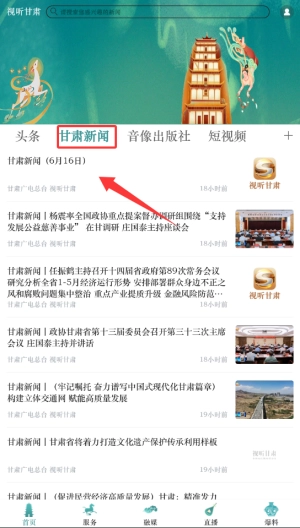 1. 打开视听甘肃,在首页的导航栏里选中“甘肃新闻”栏目,该栏目集合了甘肃本地的最新新闻资讯。