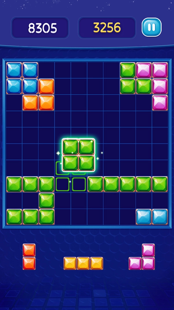 2、进行合理的放置方块棋盘内容,趣味简单操作很简单容易且上手哦;