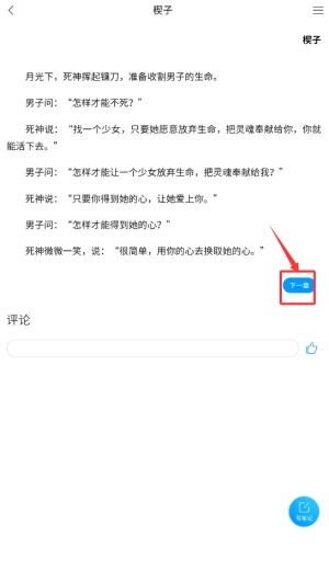 3、在书籍详情页面直接点击"下一章"按钮,即可开始浏览小说完整章节内容。