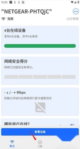 仅需一键操作,即可直接对WIFI速度与使用状况进行检测,还能轻松获取详尽的在线设备信息。