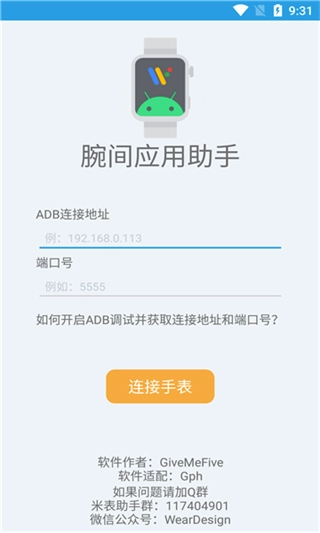 3、获取手表的ADB链接地址后,进入软件并填入,点击“连接手表”按钮;
