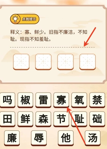 2、系统自动生成题目,用户需要按照提示在线选择成语答题。